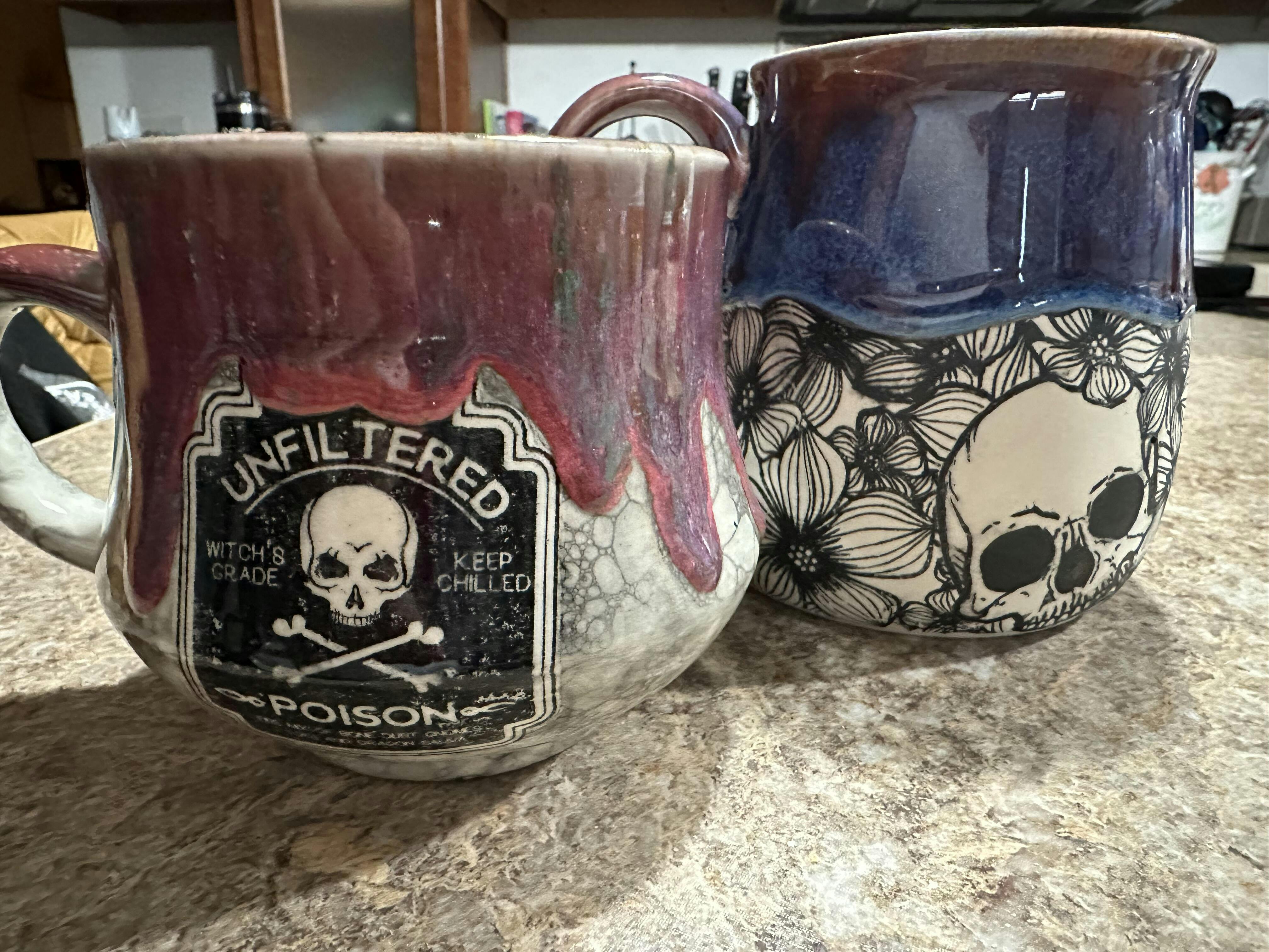 Ordered blooming skulls and Unicorn farts and I couldn't be happier! They were packaged so well, I could have probably thrown them around and they would have been fine lol. They arrived within the pre-order time frame. Both mugs are sturdy feeling, without being heavy. I will treasure these mugs for life! You won't regret ordering from here, as the skill and artwork is top notch and everything is created so beautifully. Handmade with love, and you can tell <3 I will continue to order from here, and can't wait to see what is offered in the future! Thank you!